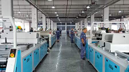 21臺打邊機、100臺卷口機、全自動套袋切縫一體機13臺、以及配套的人工套袋人員。